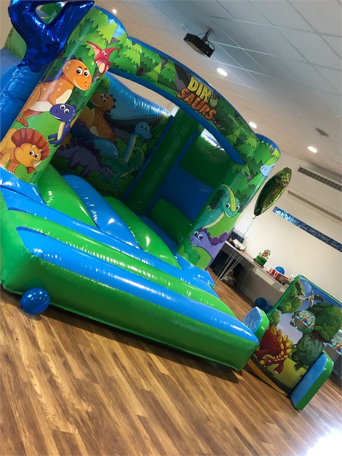 Make your child’s party roar with fun with our Dino Package, available for hire across Leeds, Bradford, Halifax and wider West Yorkshire. This themed party package combines a selection of play equipment and entertainment perfect for dinosaur fans, creating a memorable experience for birthdays, indoor celebrations and community events.