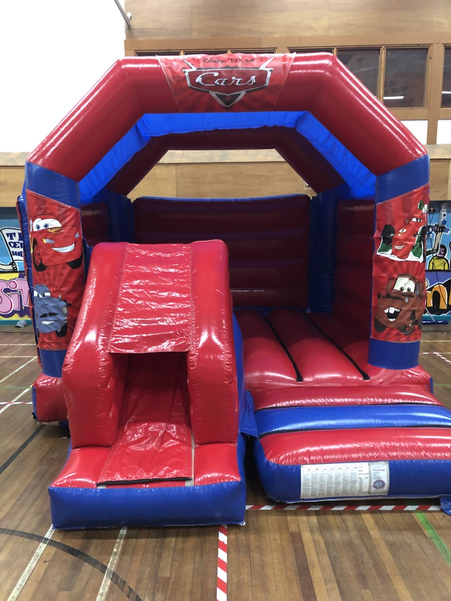 This is a beautiful red and blue Cars Adult combo bouncy castle is a hit fall all ages. Other artworks can be added to this castle please Contact Us to enquire about what other theme this castle could be. This castle is 14ft wide and 18ft in length with a awesome slide.