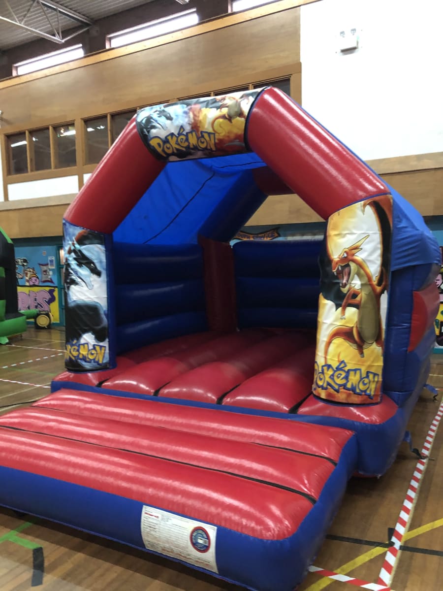 The Pokémon Bouncy Castle can be set up indoors or outdoors, provided there is adequate space and a suitable flat surface.