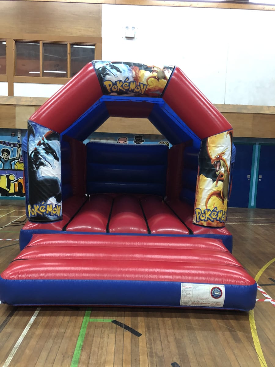 The Pokémon Bouncy Castle can be set up indoors or outdoors, provided there is adequate space and a suitable flat surface.