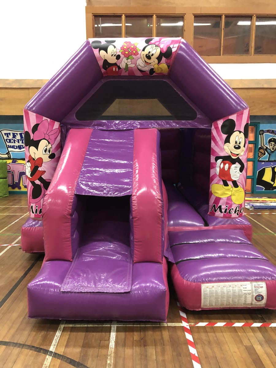 Add colourful fun and classic character charm to your child’s party with our Minnie Mouse Combo Bouncy Castle, available for hire across Leeds, Bradford, Halifax and wider West Yorkshire. Featuring bright Minnie Mouse-inspired artwork and a fun combination of bouncing and sliding, this inflatable is perfect for children’s birthday parties, themed celebrations and family fun days.