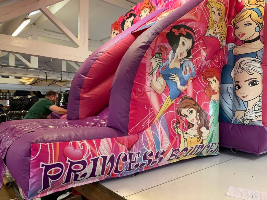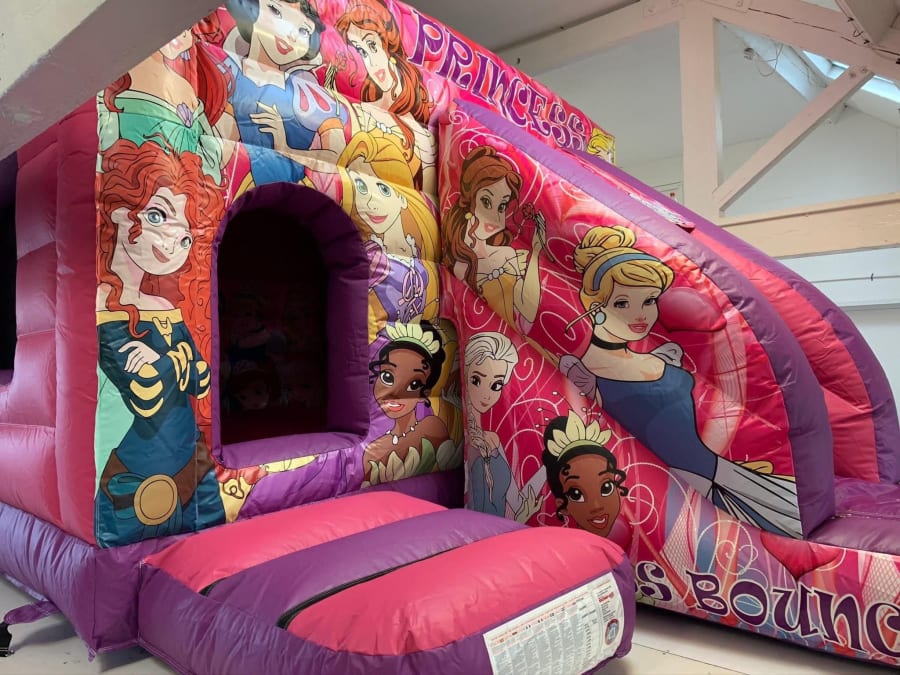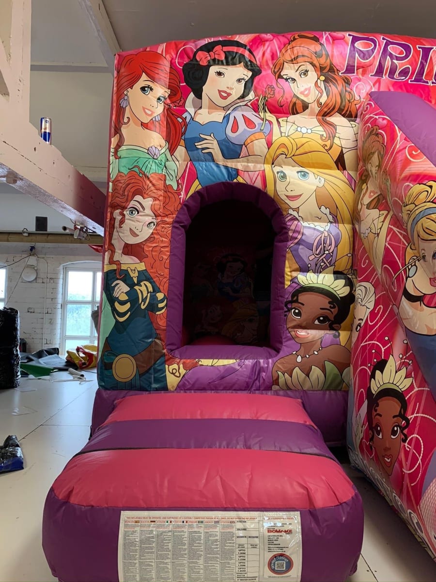 Princess combo 13ft x18ft now available at BNB'S inflatable hire, this combo castle is beautiful bright colours and printed with state of the art digital printing. Princess combo bouncy castle is perfect for any girls birthday party. The castle also benefits from having a fitted rain cover to stop those showers spoiling your day.