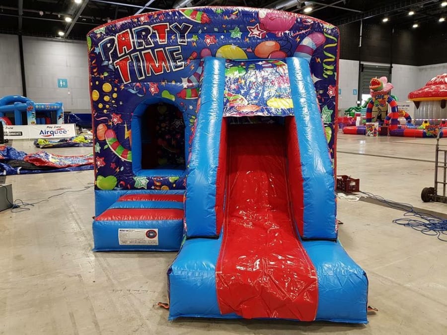 Bring music, lights and bouncing fun together with our Brand New Disco Combo Bouncy Castle, available for hire across Leeds, Bradford, Halifax and wider West Yorkshire. This Party Time, unisex bouncy castle with a slide is perfect for children who love to party, making it a fantastic choice for birthdays, celebrations and lively indoor or outdoor events.