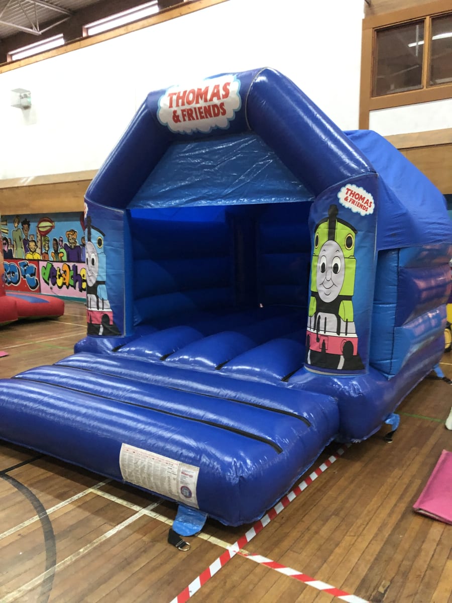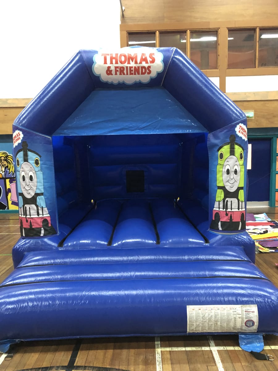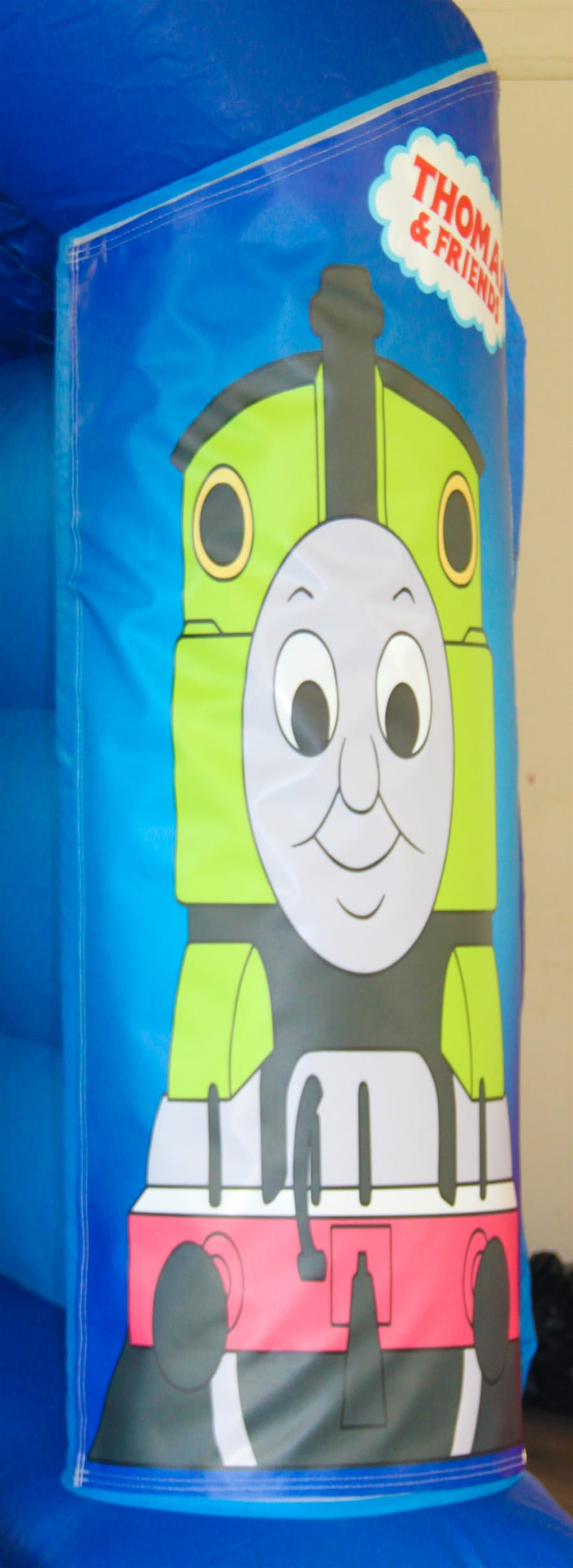 With its iconic blue graphics and compact design, this Thomas the Tank Engine bouncy castle is a fun way to encourage exercise. Great for imaginative play, youngsters can recreate their favourite stories and scenes from Thomas the Tank Engine while playing on the bouncy castle. Our Thomas The Tank Engine Themed Bouncy Castle is very popular in Bradford And Leedsand is perfect for all children's birthday parties and after school events. The front columns feature Thomas The Tank Engine and the colour is blue. It can hold four to six to seven users at a time and has a sewn in rain cover that is suitable for light rain. This castle should be booked early to avoid disappointment as its usually booked up weeks in advance. We're a member of BIHA and the Bouncy Castle Network and it is our priority to maintain a first class service in everything we do. This castle, like all of our units, has a valid Pip , and the blower and extension leads are PAT tested regularly. Our experienced and friendly staff will always give you the best safety and operating information when your bouncy castle is delivered.