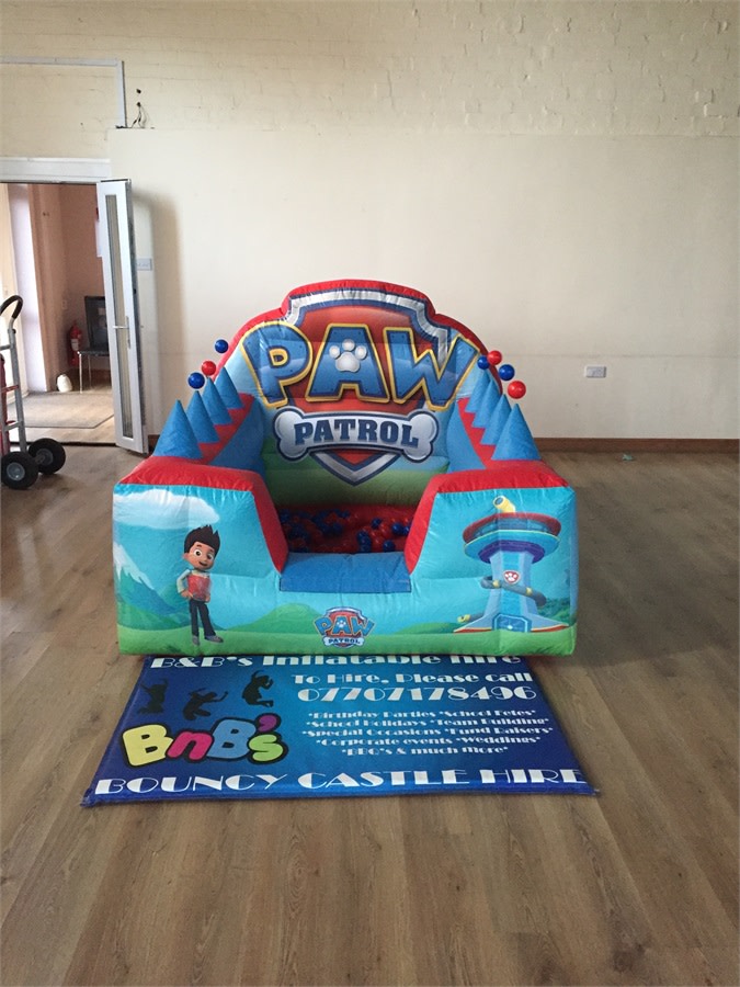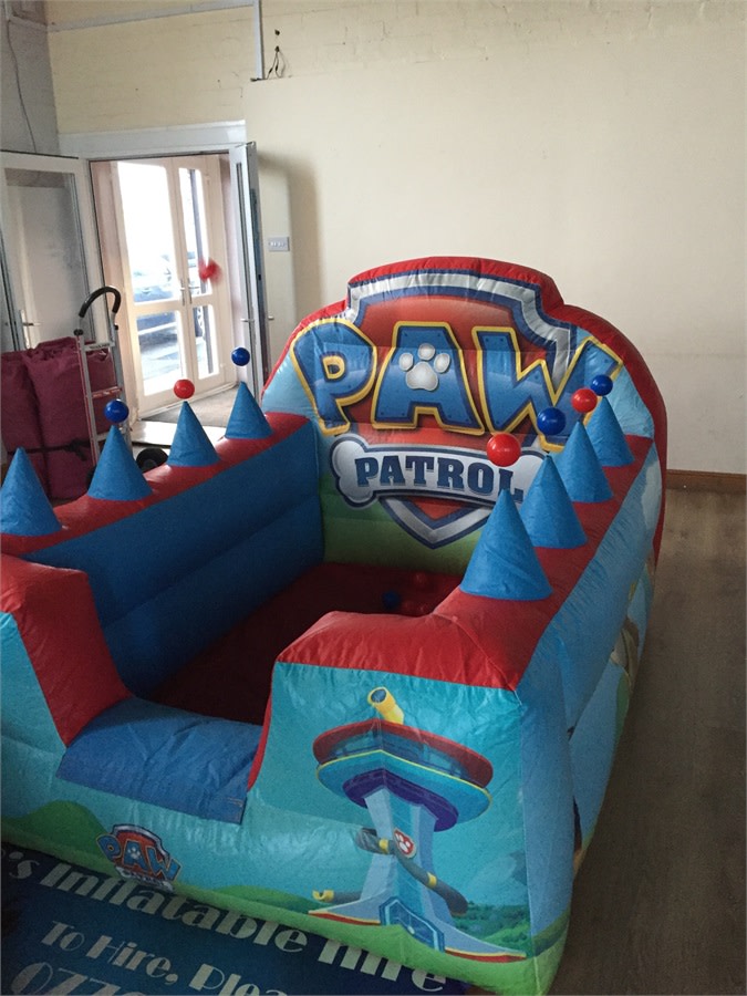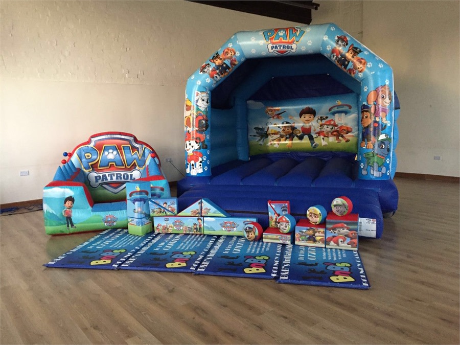 Pawpatrol Soft play package comes with a fabulous air juggling ball pool filled with balls so the children can have lots of fun. It also comes with a 18 piece soft play set. This set includes a paw patrol bouncy castle.